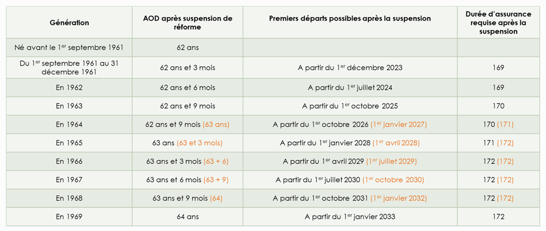Données en orange : en l’absence de suspension de la réforme des retraites de 2023